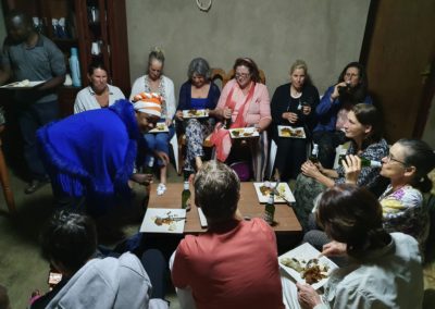 Na een diner dat speciaal voor ons was gemaakt, bestaande uit Yam, zoete aardappel, boontjes en banaan, zijn we weer naar het hotel gereisd door landelijk gebied waar banaan en mais wordt verbouwd en overal mensen nog bezig zijn. In het hotel in een slaapzaal met z’n achten op een kamer, hebben we heerlijk geslapen om in de ochtend weer vroeg op te staan.