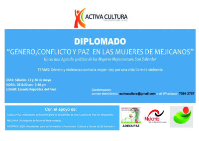 Een aansprekend resultaat van dit project is de oprichting van een comité van vier vrouwen met als opdracht het thema van gendergeweld op de agenda te zetten van de Intercomunal, het wettelijk erkende kader van de gemeenschap. Op deze manier willen de vrouwen aandacht vragen voor de problematiek van geweld, op straat, binnenshuis, waarmee deze vrouwen in de volkswijken van Mejicanos kampen.