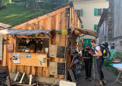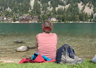 Na een lekker lange lunchpauze bij het mooie meer lopen we nog drie kwartier, de laatste 2 km omhoog, naar het Relais d’Arpette, een mooie overnachtingslocatie onderaan de Col Ferret.