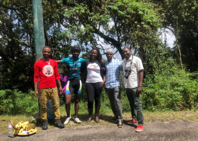 Onze overnachtingsplek van vannacht, Kitabi Eco Village, is gebouwd in de stijl van het voormalige koninklijk paleis met ronde hutten van stro, met een zandsteen vloer en verwarmd door een bakje gloeiende kooltjes. Een prachtige plek en als het niet regende zouden we fantastisch uitzicht hebben op de bergen en de theeplantages. We zitten dan ook aan de rand van de regenwoud. En zonder WiFi, dus daarom komt deze post een dag later. Dat biedt gelegenheid om onze Rwandese crew in het zonnetje te zetten: buschauffeur Joseph, mecanicien Desiré, Marthe van Sevota, fietsenvervoerder Hamada en Noell, onze onvolprezen reisgids, tolk, fotograaf én founder van Home voor Hope.