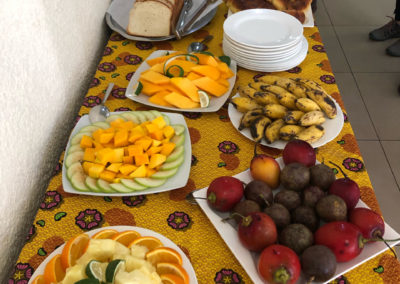 Na een mooi ontbijt met veel fruit zijn we vanuit het hotel in Nyanza vertrokken met de bus om de eerste sterk heuvelachtige 30 km te overbruggen. Daarna hebben we nog een pittige 47 km en 1030 hoogtemeters afgelegd. Enkele diehards hebben zelfs 1300 m omhoog gefietst!