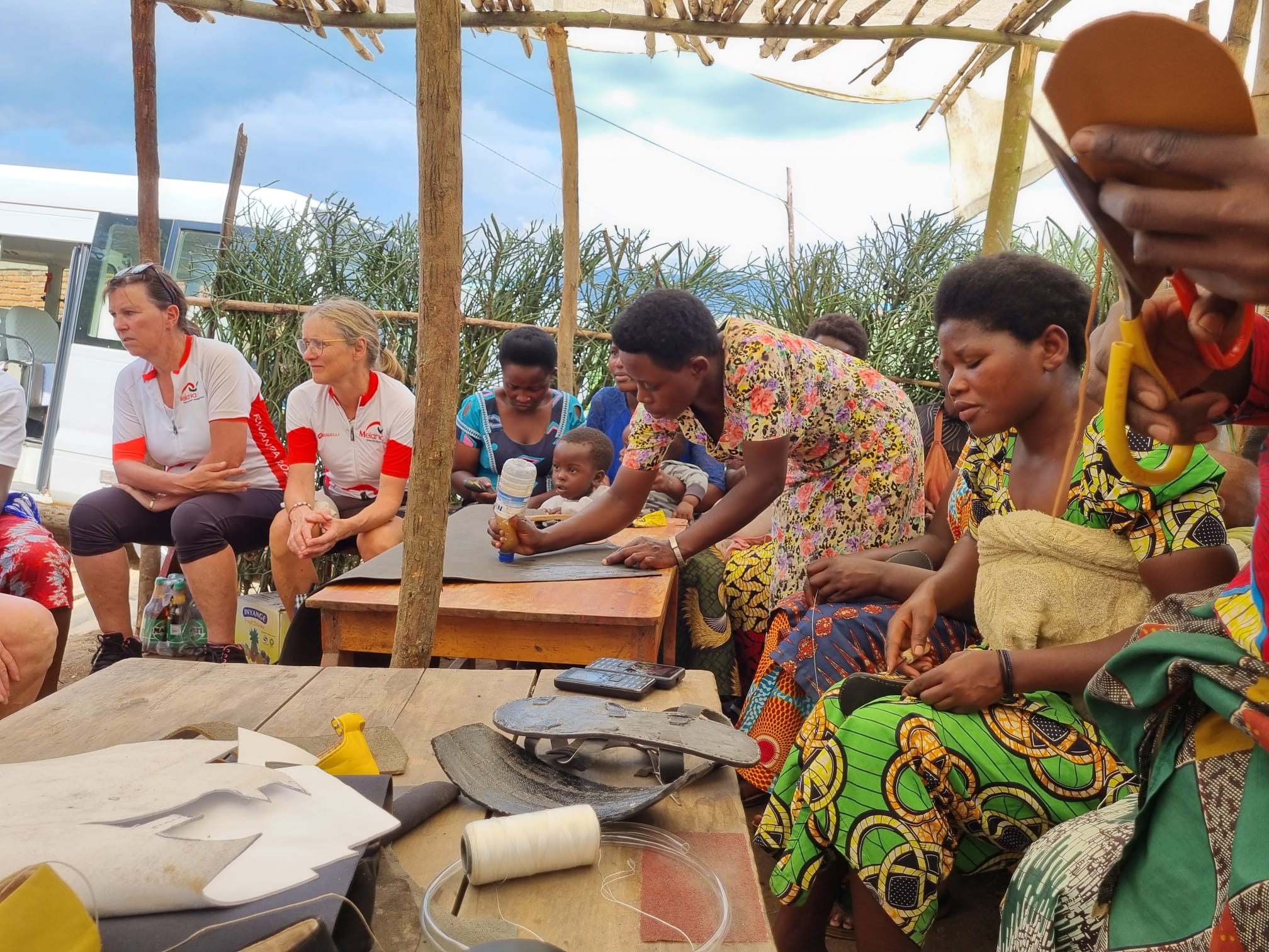 De laatste groep ondernemende vrouwen vandaag is Ejo Heza, ‘een goede toekomst’. Het zijn vijftien vrouwen die elke dinsdag en donderdag bij elkaar komen voor leerbewerking. Ze maken schoenen uit oude schoenen, en ook nieuwe schoenen uit ingekocht leer. Leerbewerking is traditioneel een mannenberoep maar dat heeft deze vrouwen er niet van weerhouden. Ze leren het vak van een aantal mannen die een vergoeding krijgen van Sevota. Bij Melania is geld aangevraagd voor een naai- en een snijmachine.