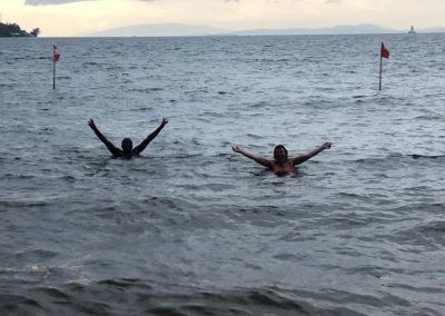 Na de lunch springen we in de bus en komen aan in de badplaats Gisenyi, vlakbij Kongo. Gauw spullen droppen bij het Musanta Hotel en daarna naar het strand voor een duik in het meer. Een heerlijke afsluiting van de dag.