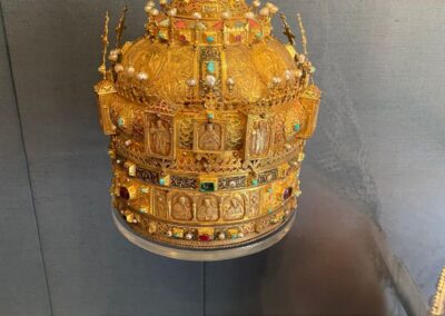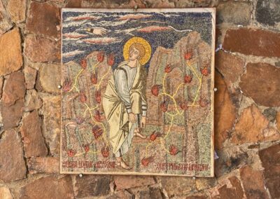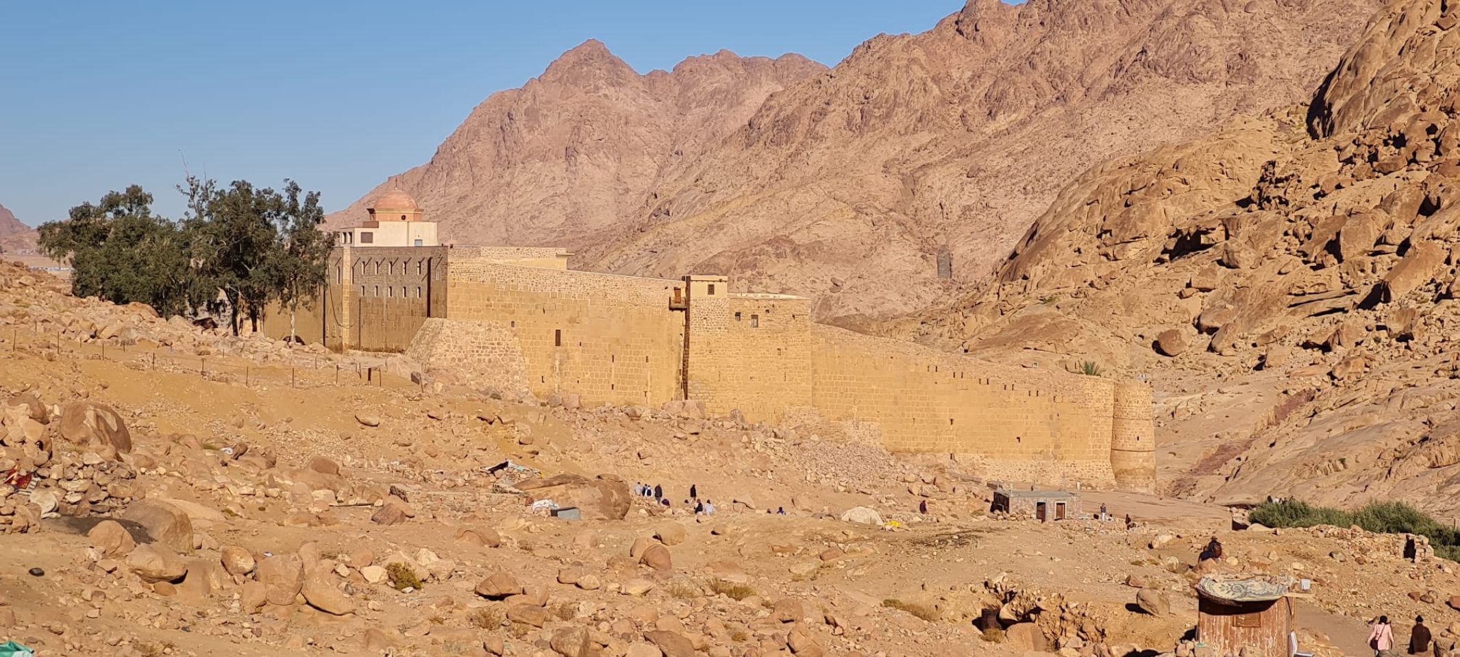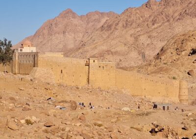 Bij binnenkomst in het klooster overviel ons de massa. Op vrijdag (weekend) is het klooster maar één uur open. Ondanks de drukte krijgen we een goede indruk van het klooster en zijn geschiedenis. Alles concentreert zich rondom de brandende struik die niet verbrandde en waar Mozes zijn oproep kreeg om het volk Israël uit Egypte te leiden naar het beloofde land. Tijdens die tocht ontving Mozes op de Sinaï berg de tien geboden (Boek Exodus in de bijbel). De berg en het klooster worden al eeuwen bezocht door pelgrims en reizigers. Het klooster kreeg pas later de naam St Catharina, naar de heilige Catharina die vanwege haar diepe geloof onthoofd is, waarna haar lichaam door engelen werd opgenomen en naar de top van de Berg Sinaï gebracht. In het klooster staat een marmeren kist met daarin relikwieën van haar. Het klooster werd gebouwd in de 3e eeuw en na 5 eeuwen vernoemd naar Catharina. Het herbergt niet alleen de St Catharina kerk maar ook een moskee en een uitgebreide bibliotheek en de op twee na grootste collectie iconen in de wereld. We bekeken die collectie en de indrukwekkende handschriften.