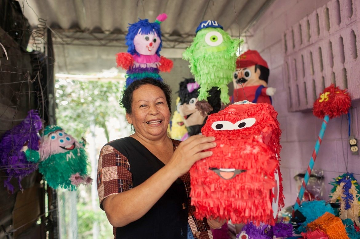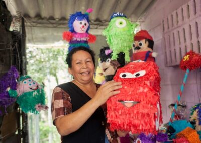 In dit project met 36 vrouwen uit kansarme gezinnen in de achterstandswijken van Mejicanos, worden op professionele wijze piñatas gemaakt. Omdat het een traditioneel en populair product is, is er veel vraag naar. Professioneel betekent dat ze grote bestellingen kunnen verwerken -er worden dan extra vrouwen ingehuurd- en deelnemen aan beurzen. De basisprincipes van economische activiteiten, omzet en winst, kwaliteit en groei, hebben ze zich eigen kunnen maken dankzij de financiële steun van Melania en begeleiding door een lokale NGO.