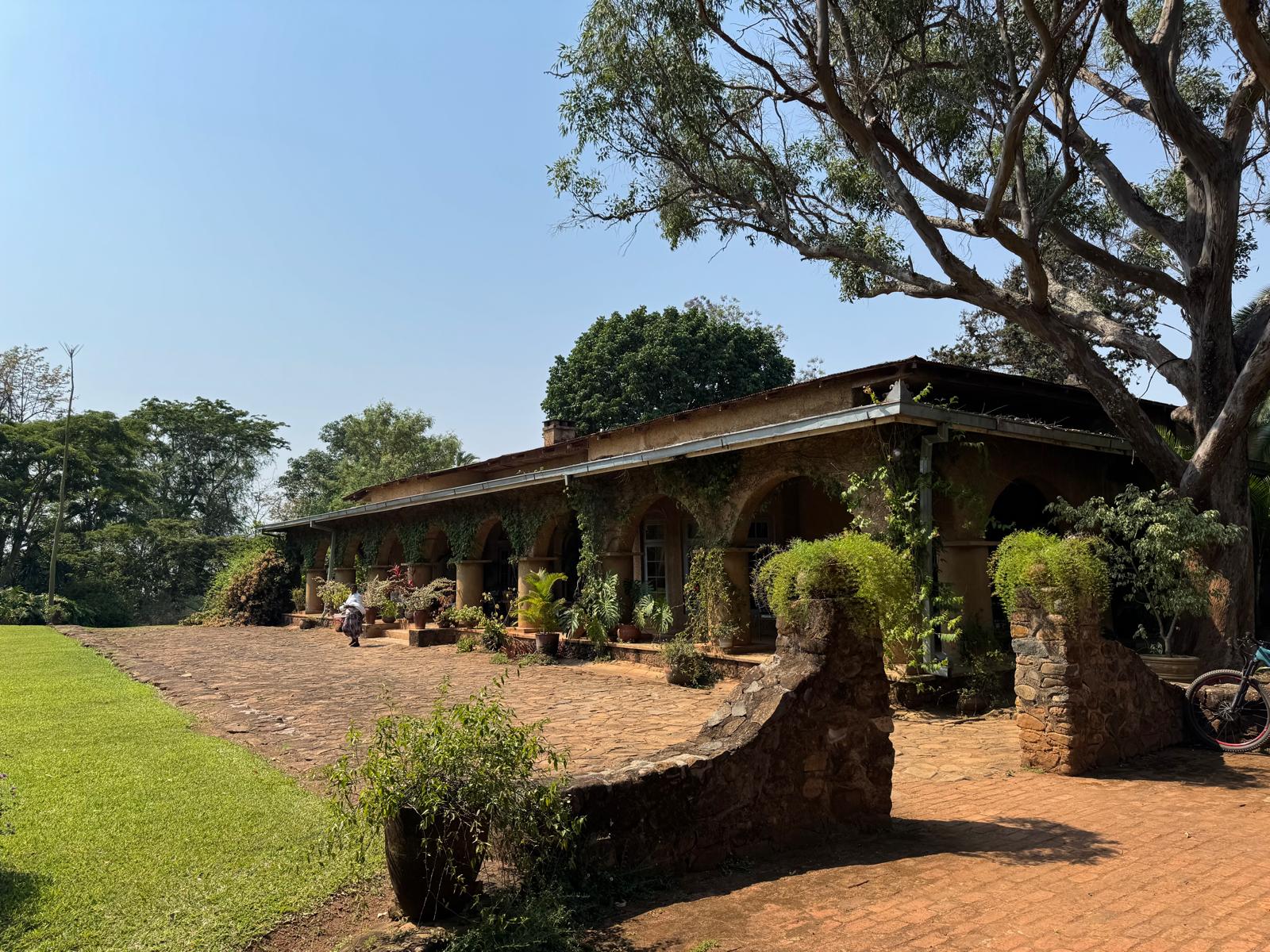 ZEVENDE FIETSDAG – Eindpunt in Mulanje. De dag start met een heerlijk vullend ontbijt op de veranda met uitzicht op het grasveld, waar wilde dieren ons hadden kunnen bezoeken.