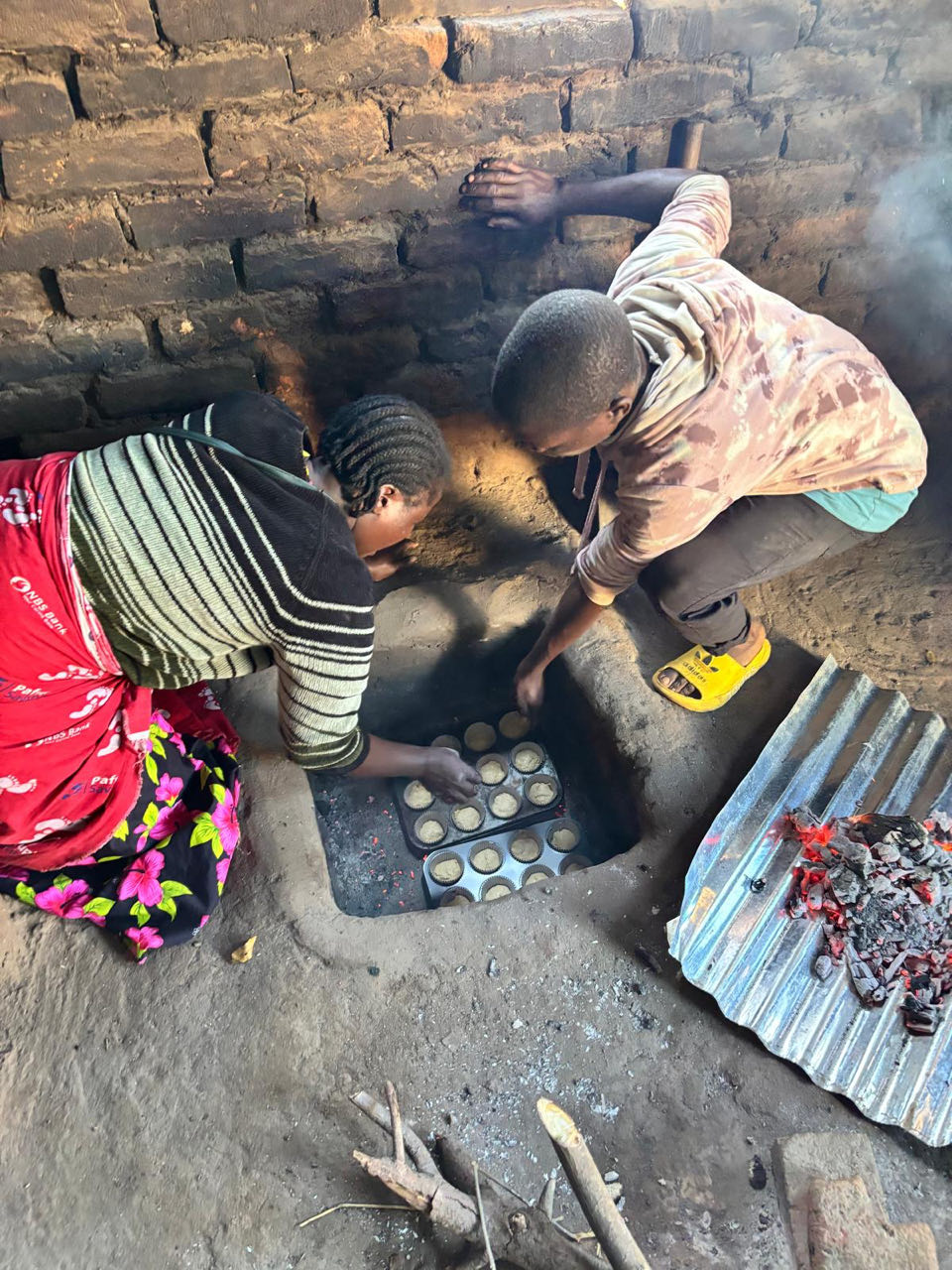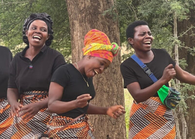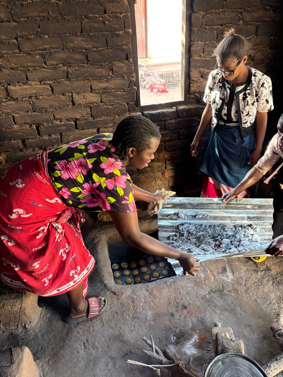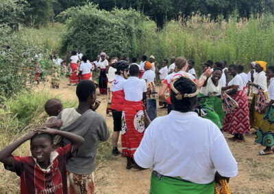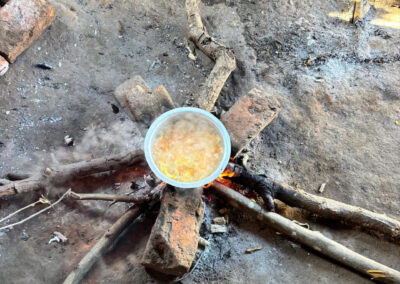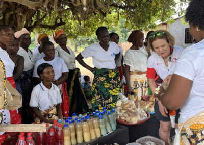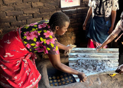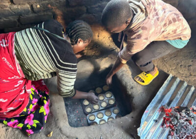 Daarna fietsen we 33 kilometer naar het dorp Chantulo. Meer dan 50 vrouwen wachten ons op straat op, zingend en dansend. Chief Chantulo verwelkomt ons met een toespraak en introduceert de 3 vrouwengroepen van het dorp. Ze laten vol trots hun producten zien, zoals sieraden, brood, kleding en baobabkoffie. Ze demonstreren ook hoe ze baobab-, zoete aardappel- en pompoenscones maken met hun zelfgebouwde oven in de grond. Een van de vrouwengroepen wil de productie van scones uitbreiden en zit met een nieuwe aanvraag in het proces bij Melania.
