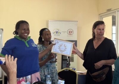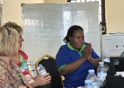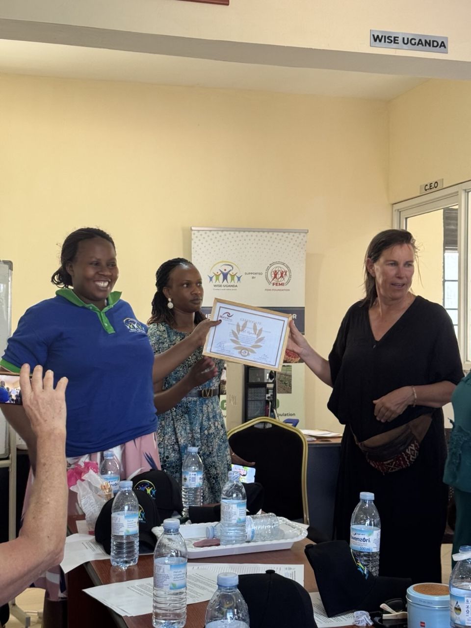 Daarna snel omkleden in een bushtoilet en in de bus naar het WISEcentrum in Kabwohe. Daar worden we hartelijk ontvangen door projectcoördinator Doreen en haar team. WISE bestaat sinds 2012, en heeft sindsdien met hulp van Melania talloze projecten ondersteund. Zij doen voor de vrouwengroepen de aanvragen, organiseren de trainingen, hulp en monitoring ter plaatse.