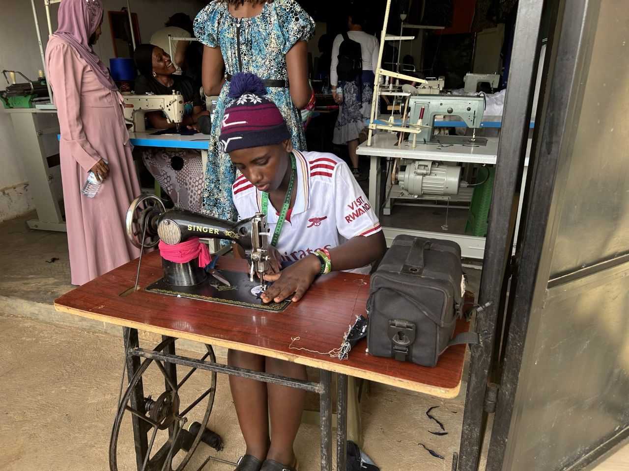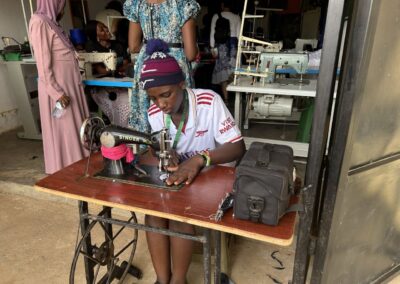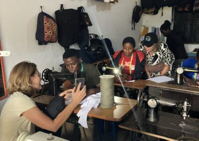 Op dit moment zijn er onder hun hoede 3 projecten actief, en vele bedrijfjes in ontwikkeling na de projectfase. Eén daarvan hebben we bezocht, een kleermakers- opleidingsbedrijfje. De deelnemers krijgen 9 maanden lang een opleiding, en kunnen daarna zelfstandig kleding maken. Heel boeiend daar rond te kijken en in gesprek te zijn over hun ambities en vorderingen.