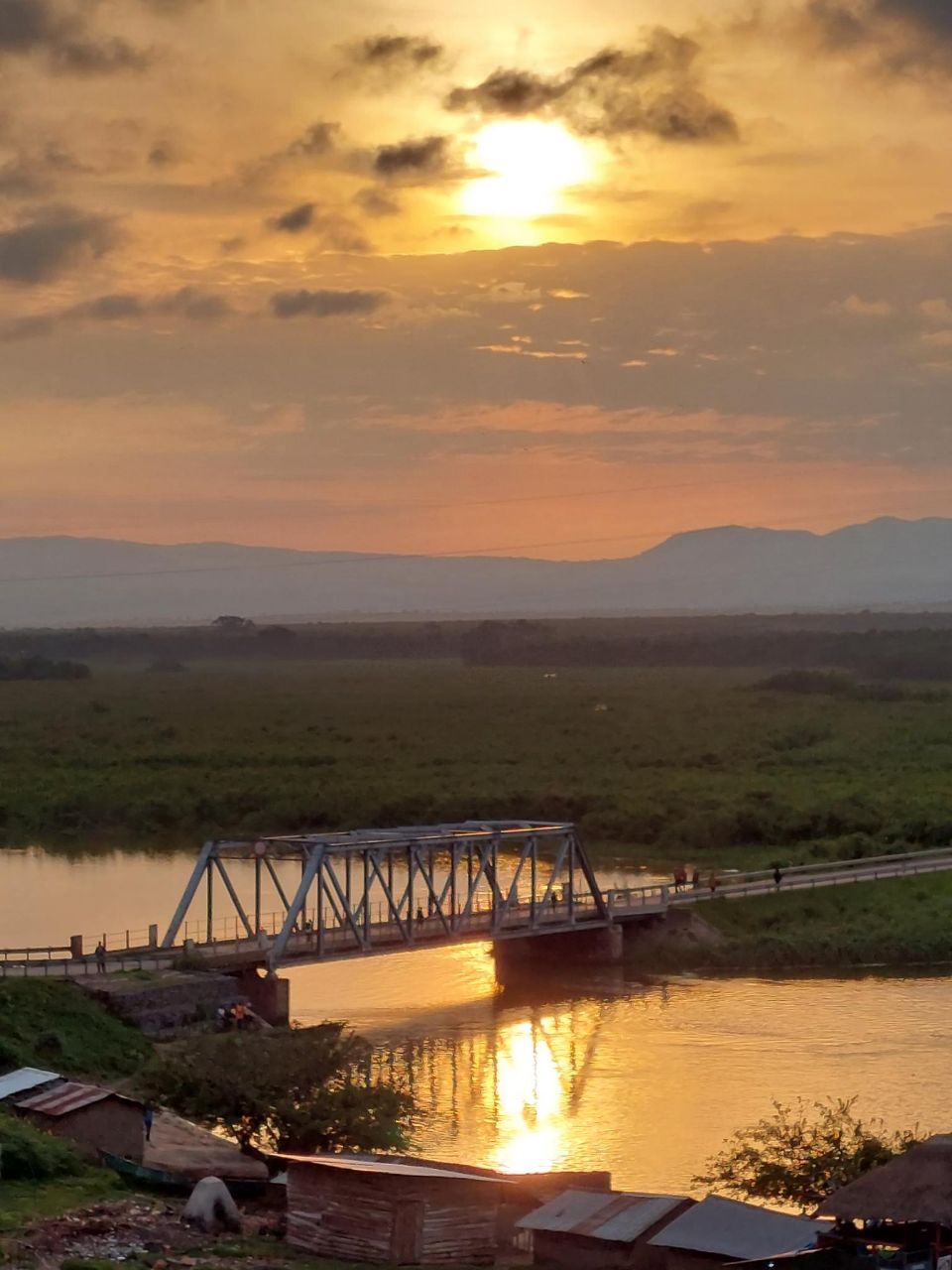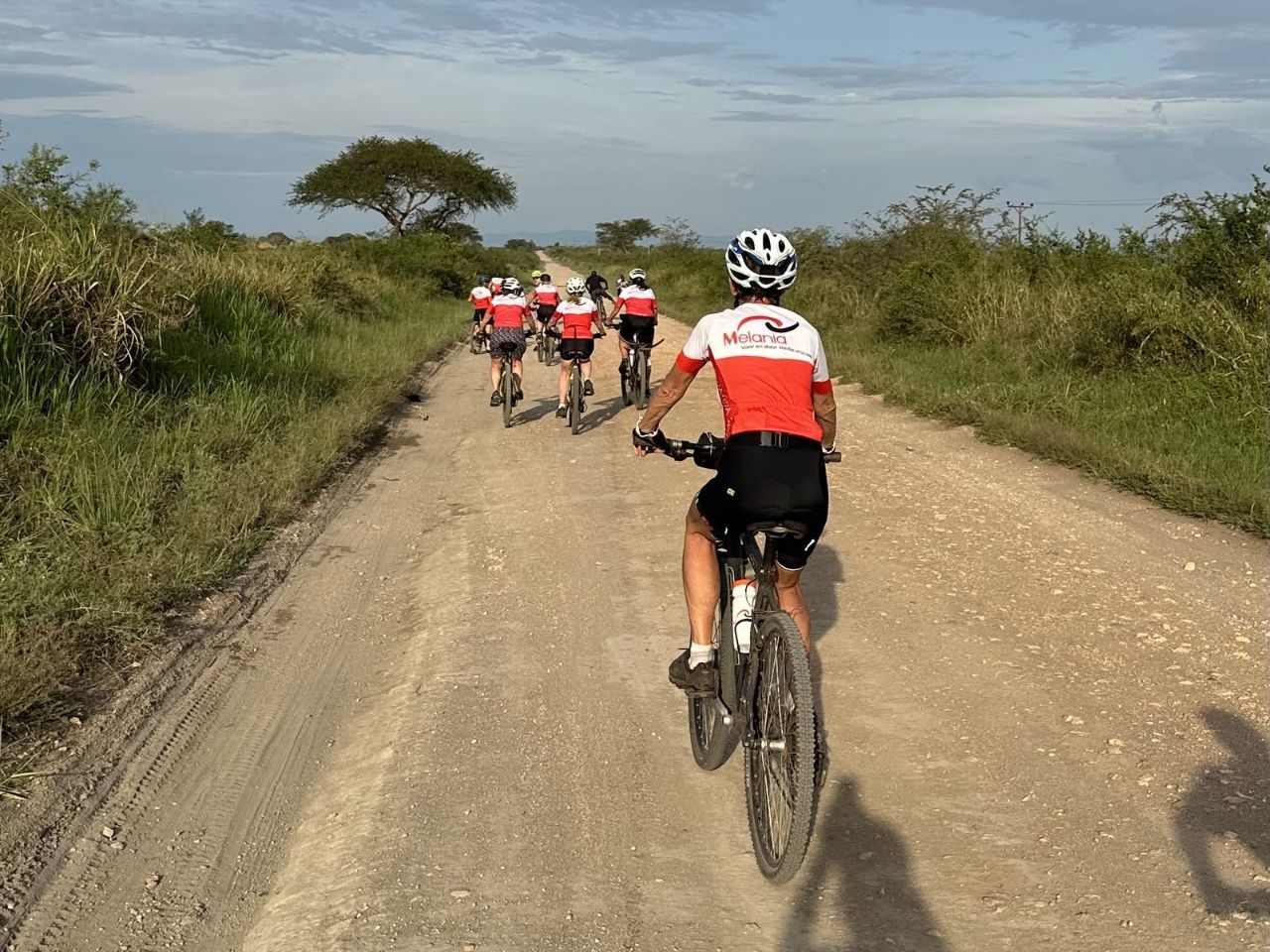 Kunnen we de hele route fietsen? Of maar deels… Is het te modderig, is het veilig, blijft het droog? Onze gids is niet helemaal duidelijk. Onze veiligheid zo dichtbij Congo is natuurlijk een terecht punt van aandacht. Na wat lokale actuele informatie, een goed gesprek en wat verkoelende druppels uit de hemel, stappen we alsnog op de fiets.